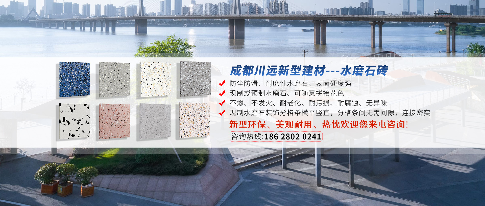 成都川遠(yuǎn)新型建材有限公司是一家專業(yè)化生產(chǎn)經(jīng)營(yíng)透水磚、pc磚定制,仿石材路沿石、水磨石磚的企業(yè)。擁有了面積達(dá)1000多平方的生產(chǎn)基地,多套完整的大、中型生產(chǎn)設(shè)備和眾多專業(yè)生產(chǎn)技術(shù)人員。本廠生產(chǎn)的各種型號(hào)等...